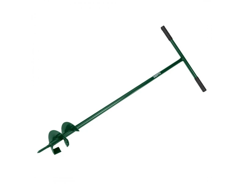 A VERTO 15G071 talajfúró 110 mm átmérőjű talajszerszám 110 mm átmérőjű. Fém fejjel és műanyag nyéllel rendelkezik. Teljes hossza 1200 mm, és porszórt bevonatú, így megőrzi korróziógátló tulajdonságait. A szerszám tömege 1,7 kg. A VERTO márkájú talajcsiga rendkívül tartós szerszám, amelyet kertekben vagy parcellákban ajánlott használni.