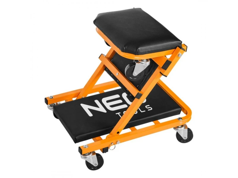 NEO szerelőágy és szék egyben. Ez a jól ismert modell továbbfejlesztett változata, a fej és háttámla alatti kiegészítő megerősítéssel, 75 mm átmérőjű nagyobb kerekekkel , amelyek olajálló és csillapító tulajdonságokkal rendelkező hőre lágyuló poliuretán elasztomerrel bevont polipropilénből készültek. A rugalmasabb, ökológiai műbőrből készült kárpitozás hozzájárul a használat kényelméhez. Az ágy egyetlen mozdulattal kényelmes műhelyüléssé alakítható. Méretei nyitott állapotban 40 x 14 x 102 cm, míg székként 54,5 x 40 x 48 cm. A vázprofil 25 x 25 x 1 mm, a teherbírás 150 kg (ágy) és 120 kg (szék). A NEO márka terméke hatékony munkát tesz lehetővé az autó alatt és megkönnyíti a munkát.