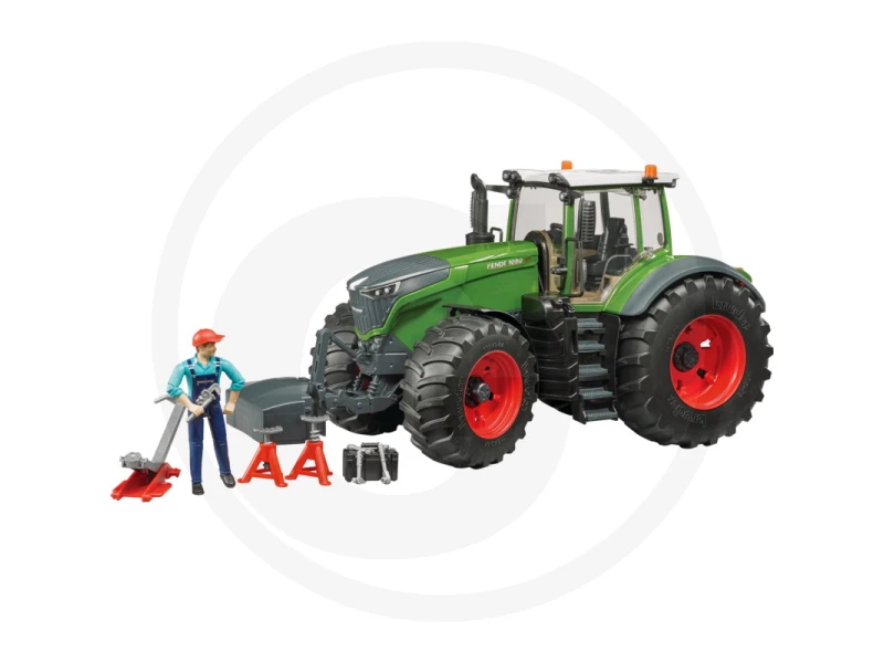 Az új Fendt 1050 Vario a Fendt termékkínálatának legerősebb modellje. Ez a traktor valóban megérdemli a nagy, erős, egyedi tulajdonságokat! Kialakítása, kezelhetősége és vonóereje egyedülálló. A BRUDER ezzel a példával mutatja be az új 4000-es típus első modelljét. Ez egy új referencia, mely kiemelkedő részletgazdagsággal, játékélménnyel, valamint a BRUDER-től már jól ismert strapabírással és minőséggel rendelkezik. Olyan bevált funkciók állnak rendelkezésre, mint a kormányozható mellső tengely vagy az állítható magasságú hátsó kapcsolószerkezet, mellyel a Profi széria összes pótkocsija csatlakoztatható. Olyan új funkciók is megjelentek, mint például az új tervezésű elülső felfogatás a tartozékok rögzítéséhez, és különleges jellemzőként az új fejlesztésű, levehető kerekekkel rendelkező tengelyek. A készlethez tartozó szerelővel, a szerszámokkal és az emelővel a kerékcsere, valamint az egyéb javítások a legapróbb részleteiben mutatható be.