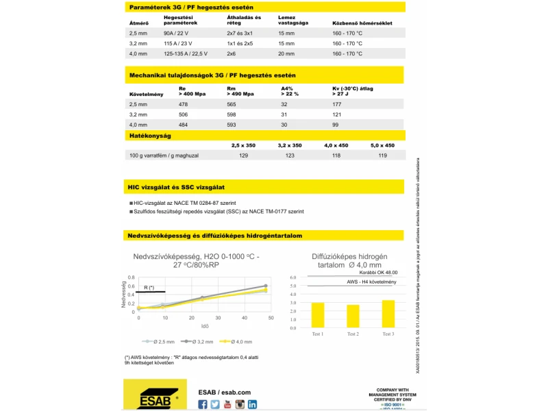 Az OK 48.00 egy megbízható, általános felhasználású, alacsony diffúzióképes hidrogéntartalmú elektróda ötvözetlen és gyengén ötvözött acélokhoz. Az OK 48.00 egy minden pozícióban használható elektróda, stabil ívet, megbízható és állandó mechanikai tulajdonságokat kínál. Akár nehezen hozzáférhető körülmény között, bármely vastagság esetén is kiváló minőségű és erős, jó mechanikai tulajdonságokkal rendelkező hegesztett kötést biztosít.
